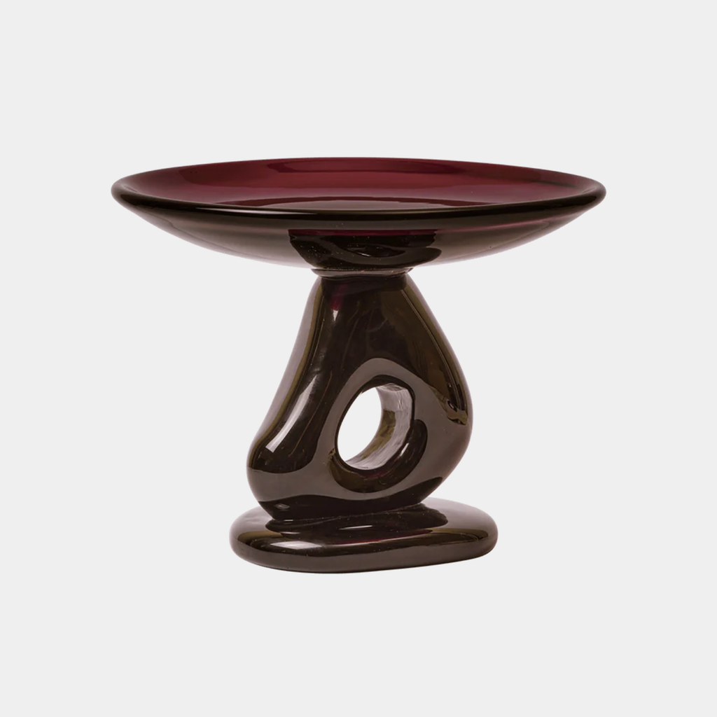 Fluid and quietly sculptural, the Damo Glass Centerpiece in Dark Grape evokes the depth and movement of water at dusk. A scaled-down companion to the original Damo, it features a softly curved rim and a lifted, sculptural base that gives the piece a light, floating presence.