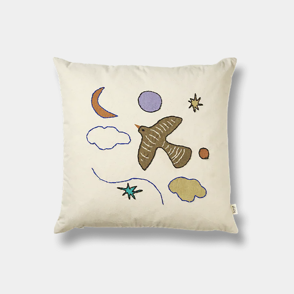 The Naïve Cushion brings a gentle, storybook charm to children’s spaces. Crafted from GOTS-certified organic cotton, each cushion features hand-embroidered illustrations with a mix of soft, muted tones and playful detail. Designed to feel both comforting and decorative, it adds warmth and personality to a bed, chair, or reading nook—appealing to children and adults alike.