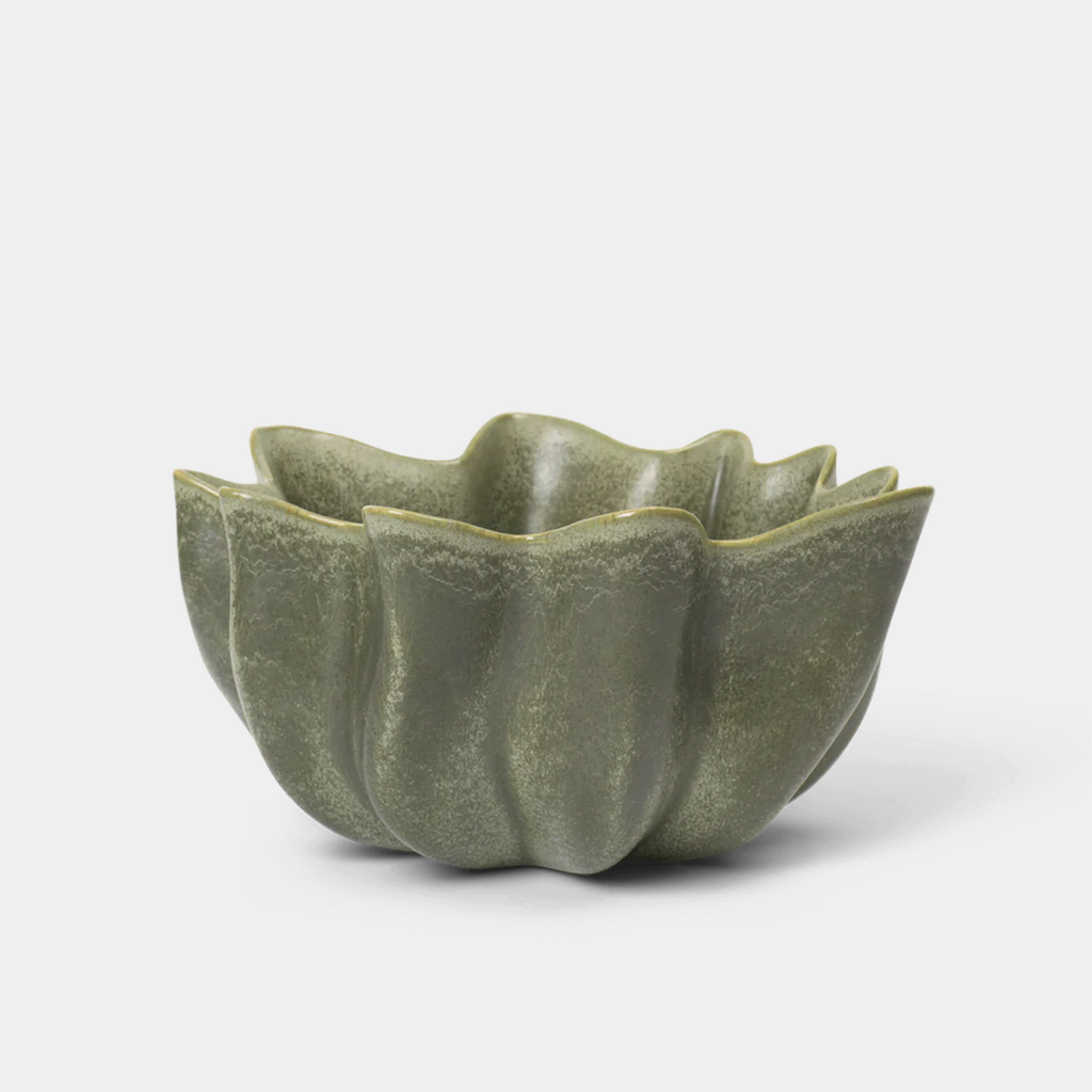 The Nium Bowl takes its design cues from the graceful flow of draped textiles, expressed through fluid, sculptural folds. The reactive glaze plays with light and shadow, emphasizing the bowl’s dynamic curves and refined silhouette. Use it as a fruit bowl or serving piece, or display it as a decorative object on its own.