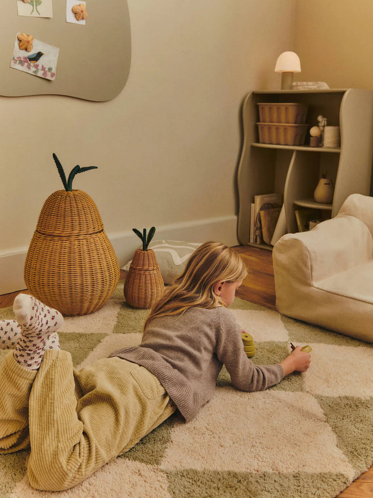 The Braided Pear Storage offers a playful yet practical storage solution for children’s spaces. Hand-braided from natural rattan, its sculptural pear shape adds warmth and texture while providing generous space for toys, teddies, or blankets. Available in two sizes, it brings both function and charm to nurseries and playrooms.