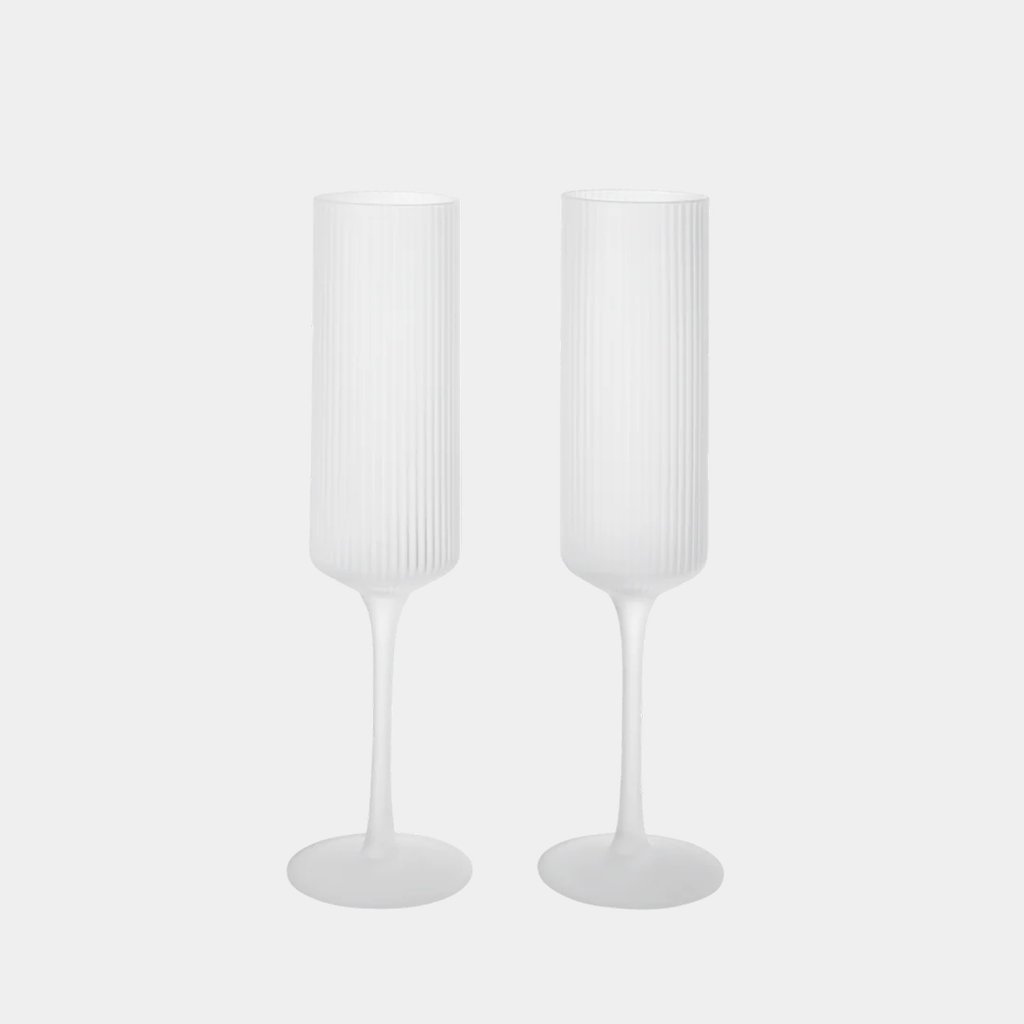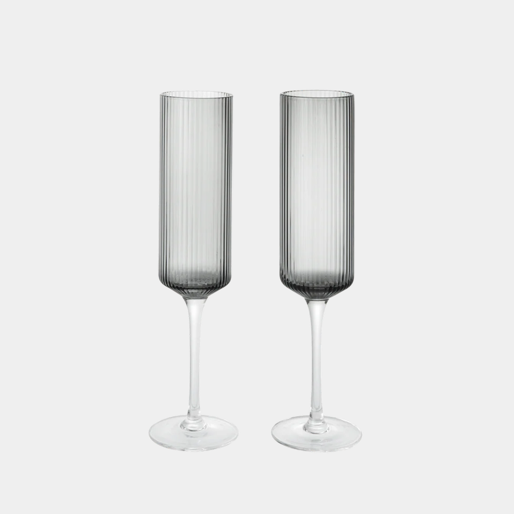 The Ripple Champagne Flutes introduce an elegant, elongated silhouette to the beloved Ripple series. Mouth-blown into a mould, each glass features the signature vertically ribbed texture that catches light beautifully while enhancing the sparkle and aroma of champagne and sparkling wines. Refined yet tactile, they elevate everyday moments as well as celebratory toasts.
