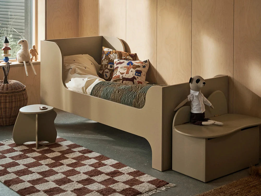 A child’s bed should be a haven for sweet dreams and cosy moments. The Sill Junior Bed is a contemporary take on a timeless children's bed. With its soft curves, high headboard and footboard, it creates a comforting space for bedtime routines and peaceful nights. Crafted from FSC™ certified MDF and finished in a warm cashmere tone, the bed c