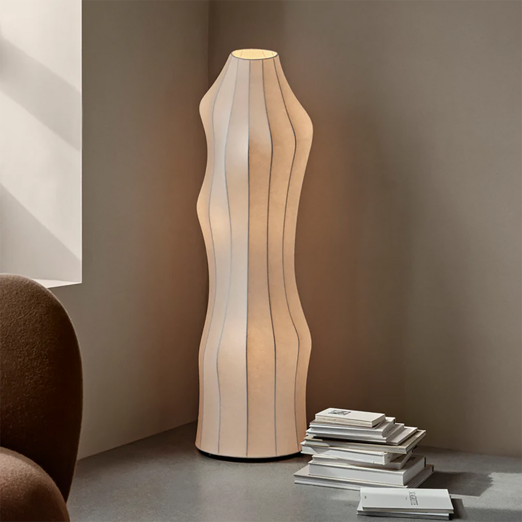 The Dae Lamp draws inspiration from the ethereal beauty of the Pieridae Butterfly Chrysalis. With its combination of delicate, non-woven polymer material and unique, organic shape, the lamp not only serves as a source of illumination but also as a work of art. The translucent shade diffuses light in a unique and captivating manner, casting a warm and gentle glow that creates a cosy atmosphere in any room. Elevate your space with the contemporary aesthetic of the Dae Lamp – where form meets function in perfect harmony. The non-woven polymer shade will beautifully patinate over time, giving it a unique appearance.