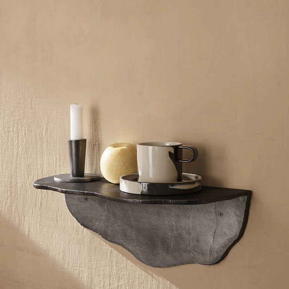 The Fracture Shelf by Ferm Living captures the beauty of raw material in sculptural form. Cast from 100% recycled aluminium with a blackened finish, the design’s folded planes catch and reflect light, creating subtle shifts in tone and texture throughout the day. Functional yet expressive, it can hold books, objects, or stand alone as a minimalist wall sculpture—blurring the line between art and utility.