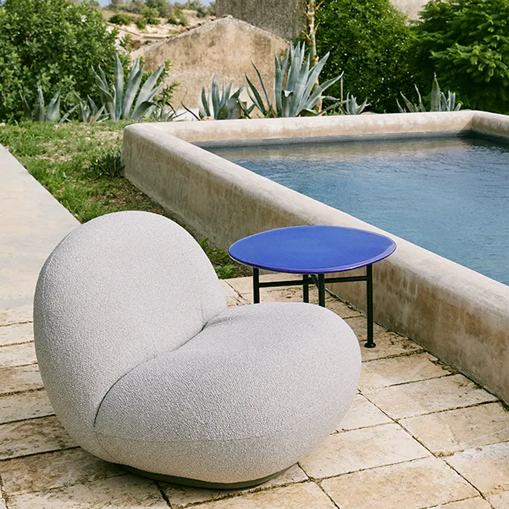Available in four finishes—Pacific Blue, Rock Red, Clam White, and Midnight Black—the tables can stand alone as expressive statement pieces or be styled in clusters of varying sizes and colors for an artful, layered composition.
