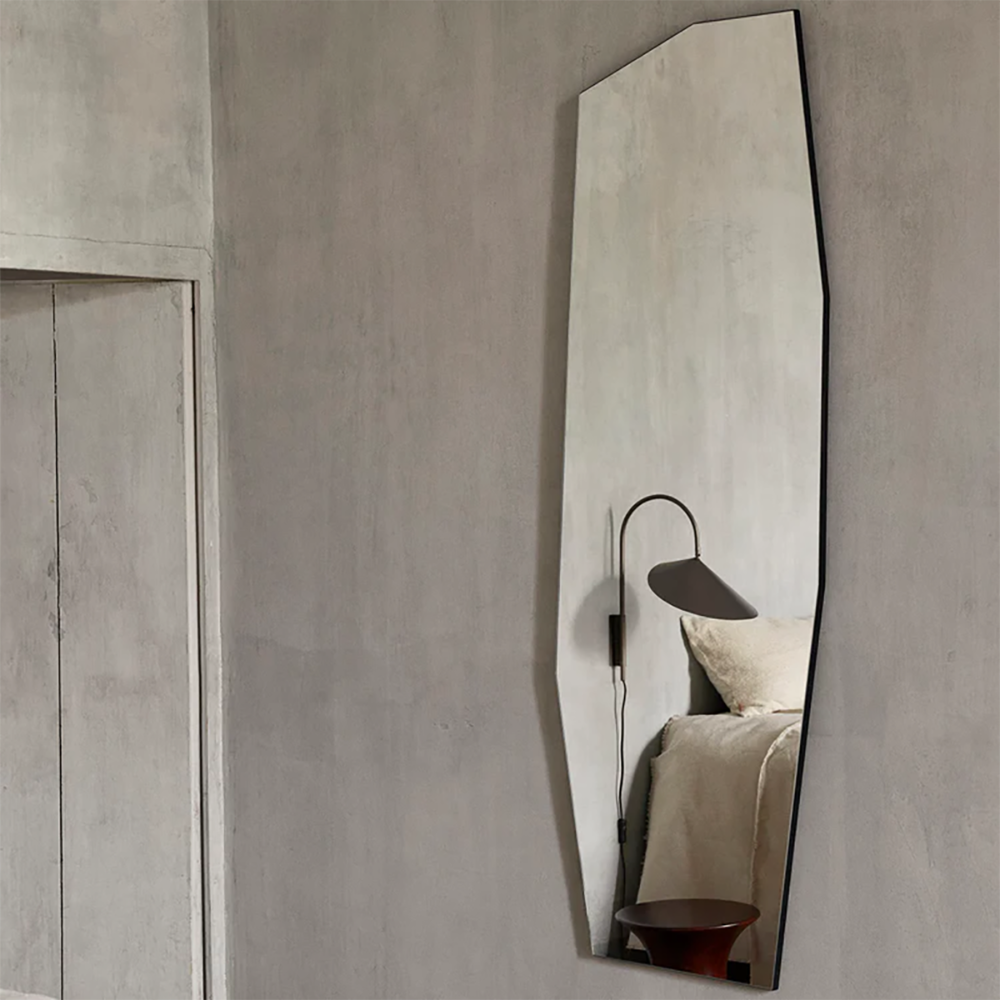 Sharp yet soft, the Shard Mirror brings an artful, asymmetrical line to the room. The full-length scale opens up narrow halls and bedrooms, reflecting light and movement without feeling heavy or overdesigned. Hang it in an entry, pair it with a console, or let it stand alone as a sculptural moment—modern, versatile, and quietly refined.