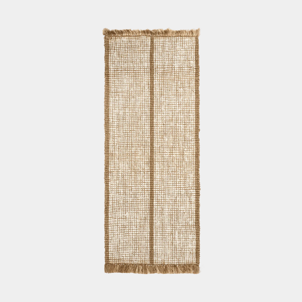 Inspired by the plush textiles found in Mediterranean stone houses, the Athens Stripes Runner is meticulously handwoven from pure jute. Its richly textured weave and bold yet softened stripes bring warmth and natural character to hallways, bedrooms, or living areas. Finished with full fringed edges, it balances rustic charm with a quietly sophisticated expression. Available in two colorways and three sizes to suit a range of interiors.