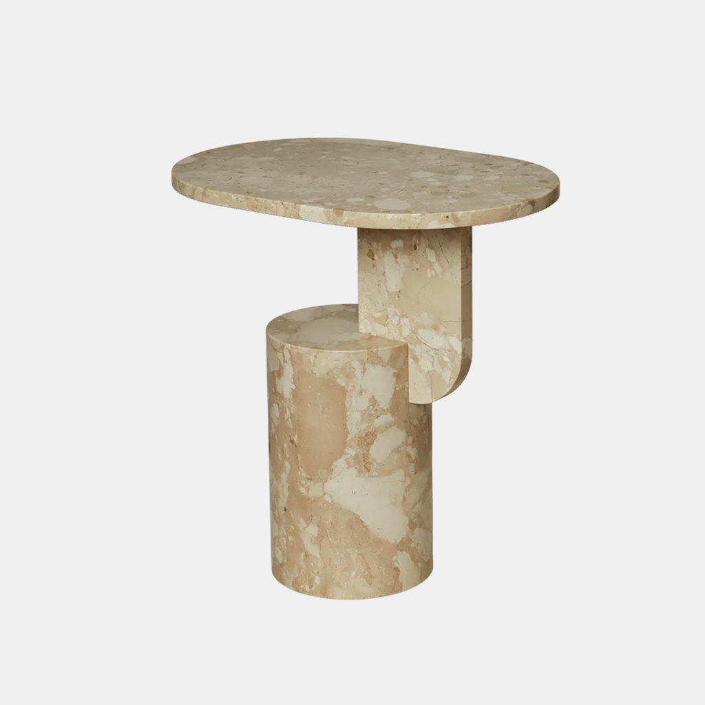 The Insert Side Table by Ferm Living is reimagined in solid marble, bringing a new materiality to its sculptural form. The natural stone enhances the contrast between curved and linear elements, adding quiet elegance and sharp definition. Compact and grounded, the table makes a refined statement beside a lounge chair, next to a bed, or in a hallway.