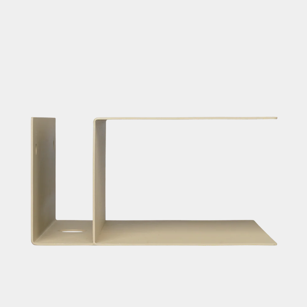 The Lager Bedside Table is a sleek wall-mounted storage solution inspired by industrial design and the bold simplicity of brutalist architecture. Crafted from folded powder-coated iron, it offers a compact yet highly functional surface for lighting, books, and everyday essentials. An integrated cable cutout keeps cords neatly organized, blending practical utility with refined modern form.