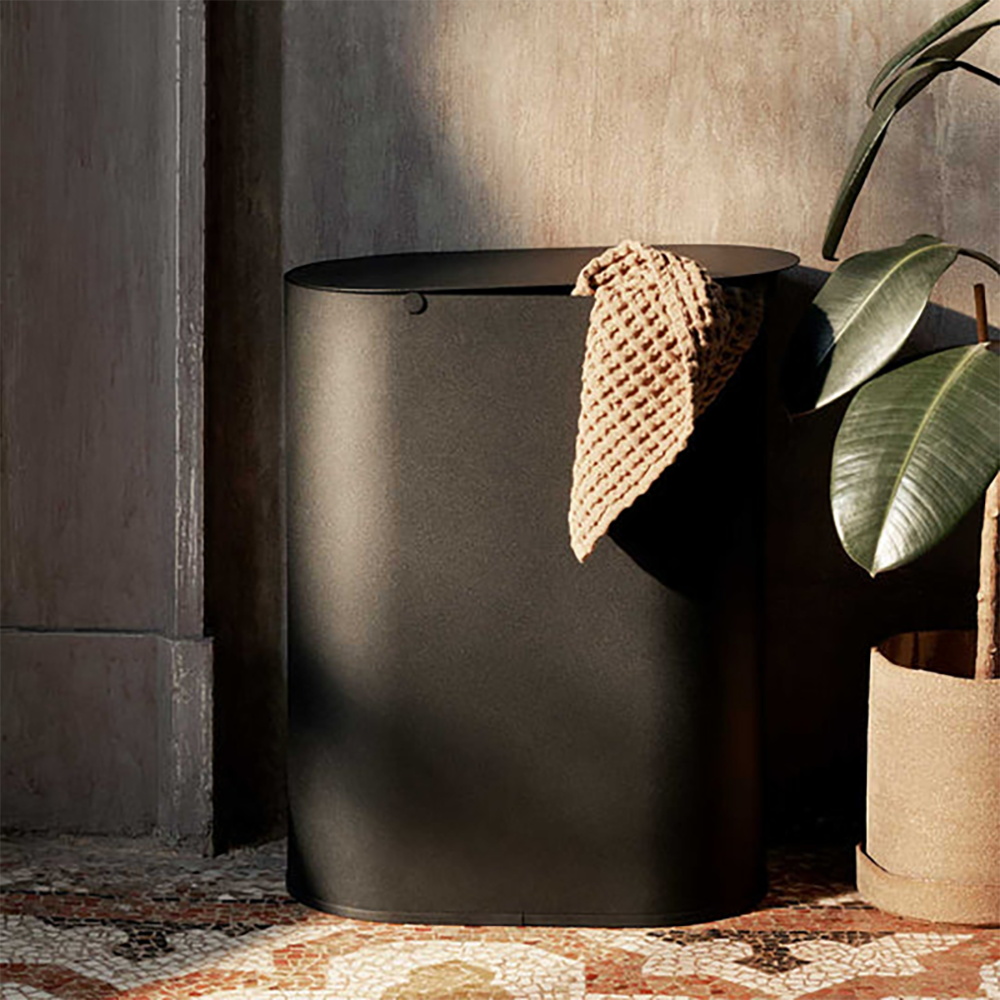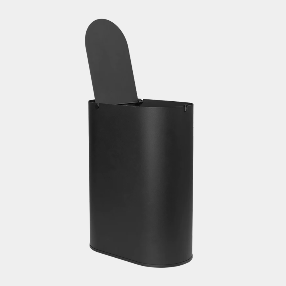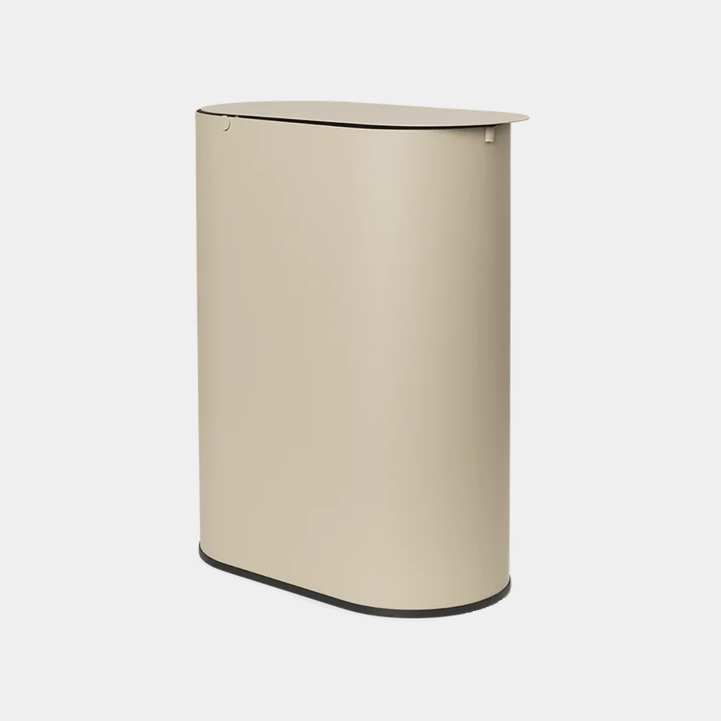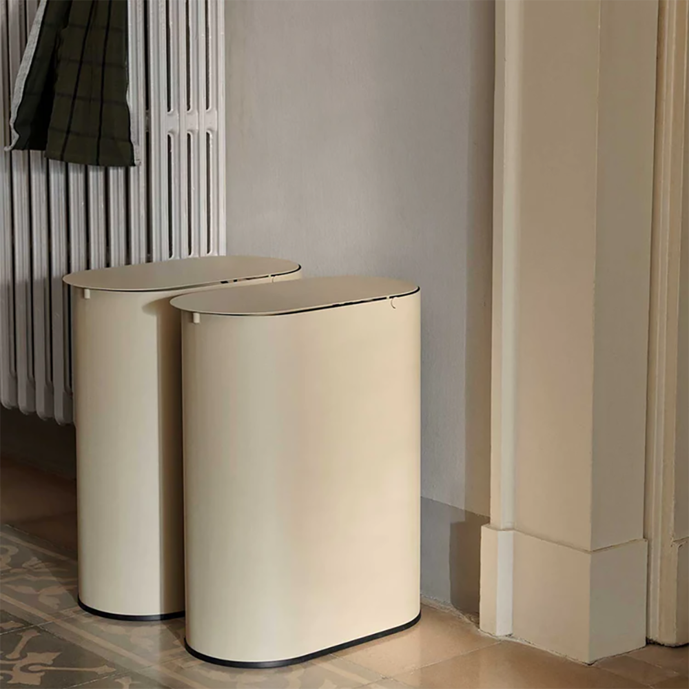 Simple by name and by nature, the Enkel Bin brings quiet order to everyday sorting. Its clean, oval silhouette in powder-coated carbon steel keeps the kitchen looking composed, while a removable inner bin—made from recycled plastic and finished with a practical metal handle—makes emptying and cleaning effortless. Use one on its own or line up a few to create a streamlined at-home system for recycling, compost, and trash. Subtle, durable, and thoughtfully designed to make tidying feel easy.