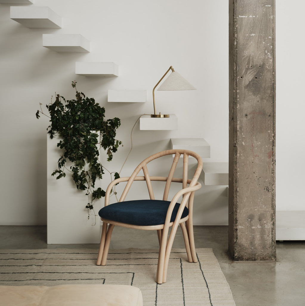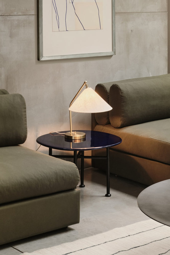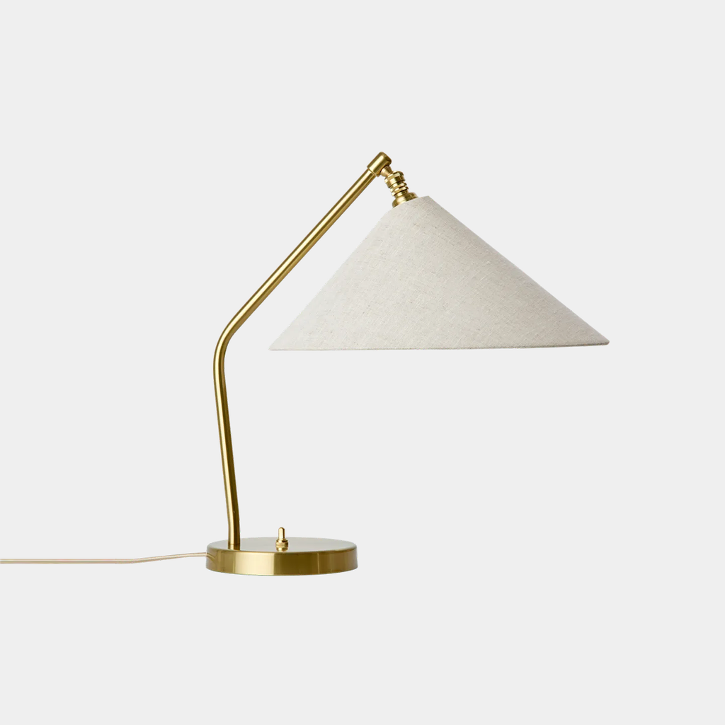 GUBI’s new addition to the Gräshoppa Collection by Greta M. Grossman reimagines the designer’s original table lamp with an elongated shade in natural canvas. Inspired by archival images of an early prototype, this edition introduces a softer material expression while maintaining the collection’s iconic angled stem and round base in polished brass. The extended shade balances the lamp’s geometric lines, diffusing light evenly and allowing easy adjustment for reading or ambiance. With its warm, gentle glow and refined silhouette, the Gräshoppa Table Lamp in canvas complements contemporary interiors and pairs beautifully with the steel-shade edition.
