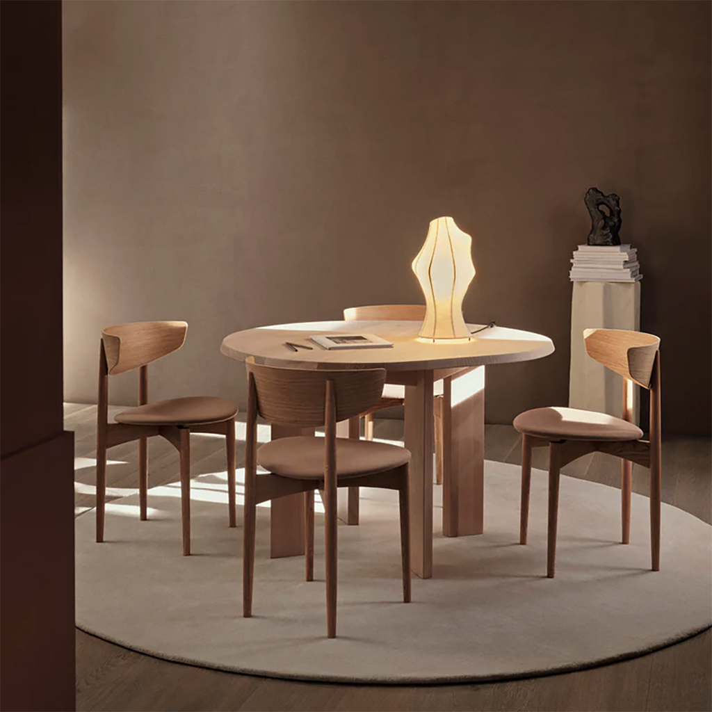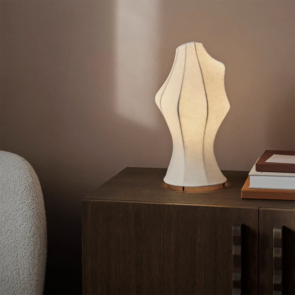 Inspired by the cocooned beauty of a chrysalis, the Dae Table Lamp pairs an organic, sculptural silhouette with a softly translucent shade that diffuses a warm, ambient glow. The lightweight form sits gracefully on a slim iron base, lending quiet drama to bedsides, consoles, and reading nooks while layering texture and light into modern interiors.